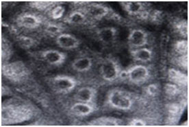 皮肤CT:(左)正常皮肤与(右)初发4级白斑对比